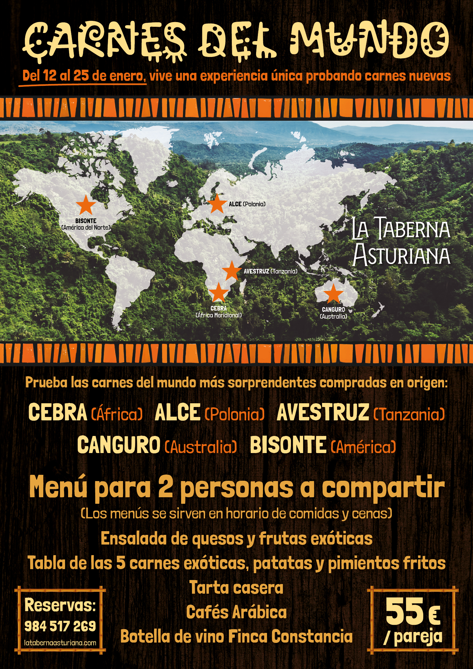 El menú Carnes del Mundo estará disponible solo del 12 al 25 de enero en La Taberna Asturiana.